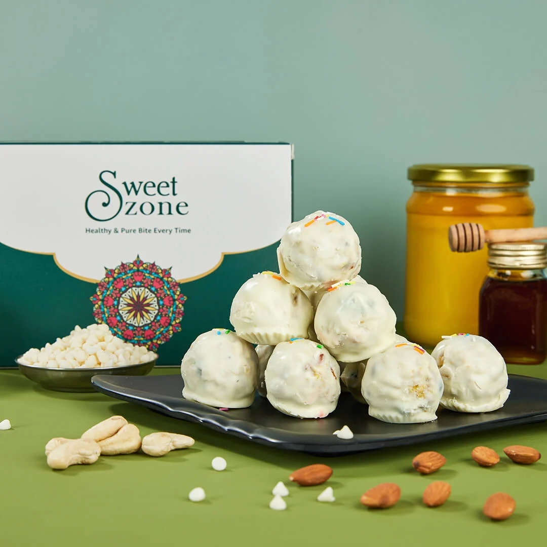Bring home the perfect blend of tradition and indulgence. Order White Chocolate Dryfruit Balls today!